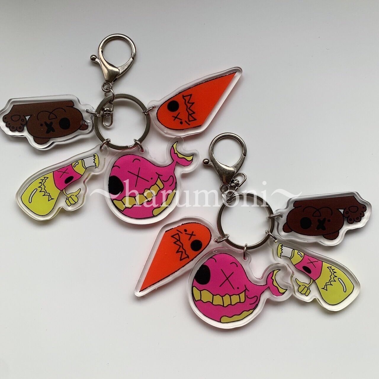 4連イラストチャーム キーリング アクリルキーホルダー ソイングク